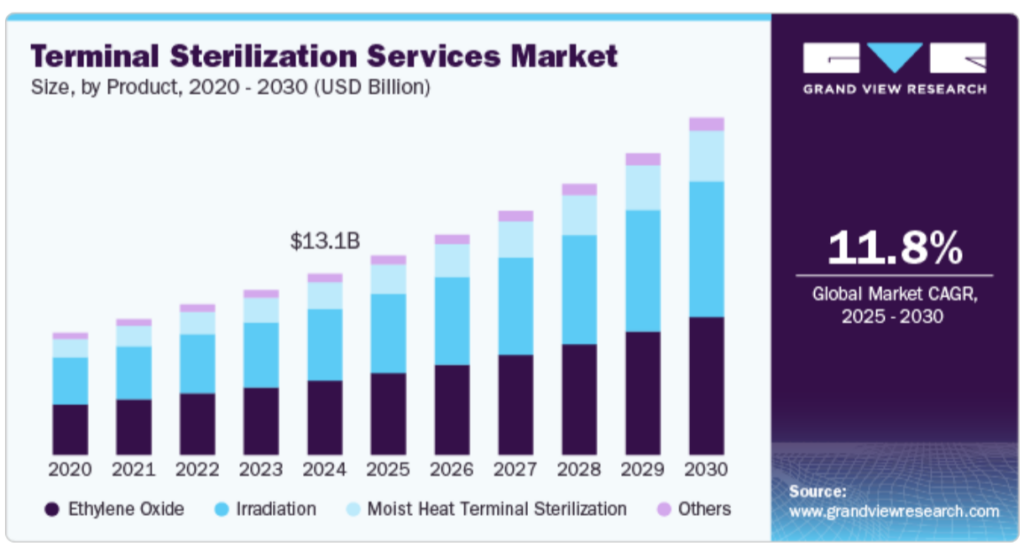 The global terminal sterilisation services market is projected to grow from USD 13.09 billion in 2024 at a CAGR of 11.08% through 2030. This growth is driven by increasing surgical volumes, hospital-acquired infections, and demand for sterile drug manufacturing.