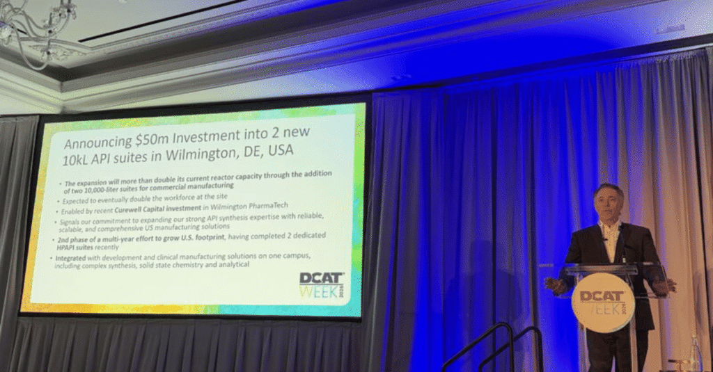- Wilmington PharmaTech is investing $50 million to expand its Delaware campus, adding two 10,000-liter reactor suites to increase API manufacturing capacity.